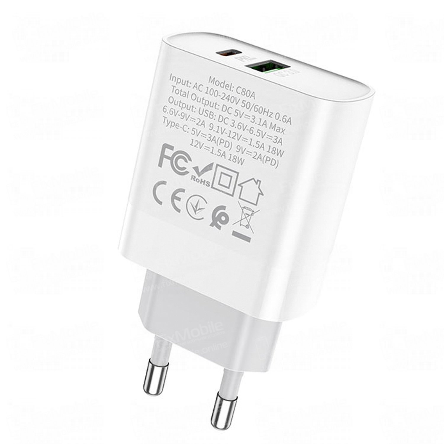Сетевое зарядное устройство Hoco C80A USB/Type-C (белое)